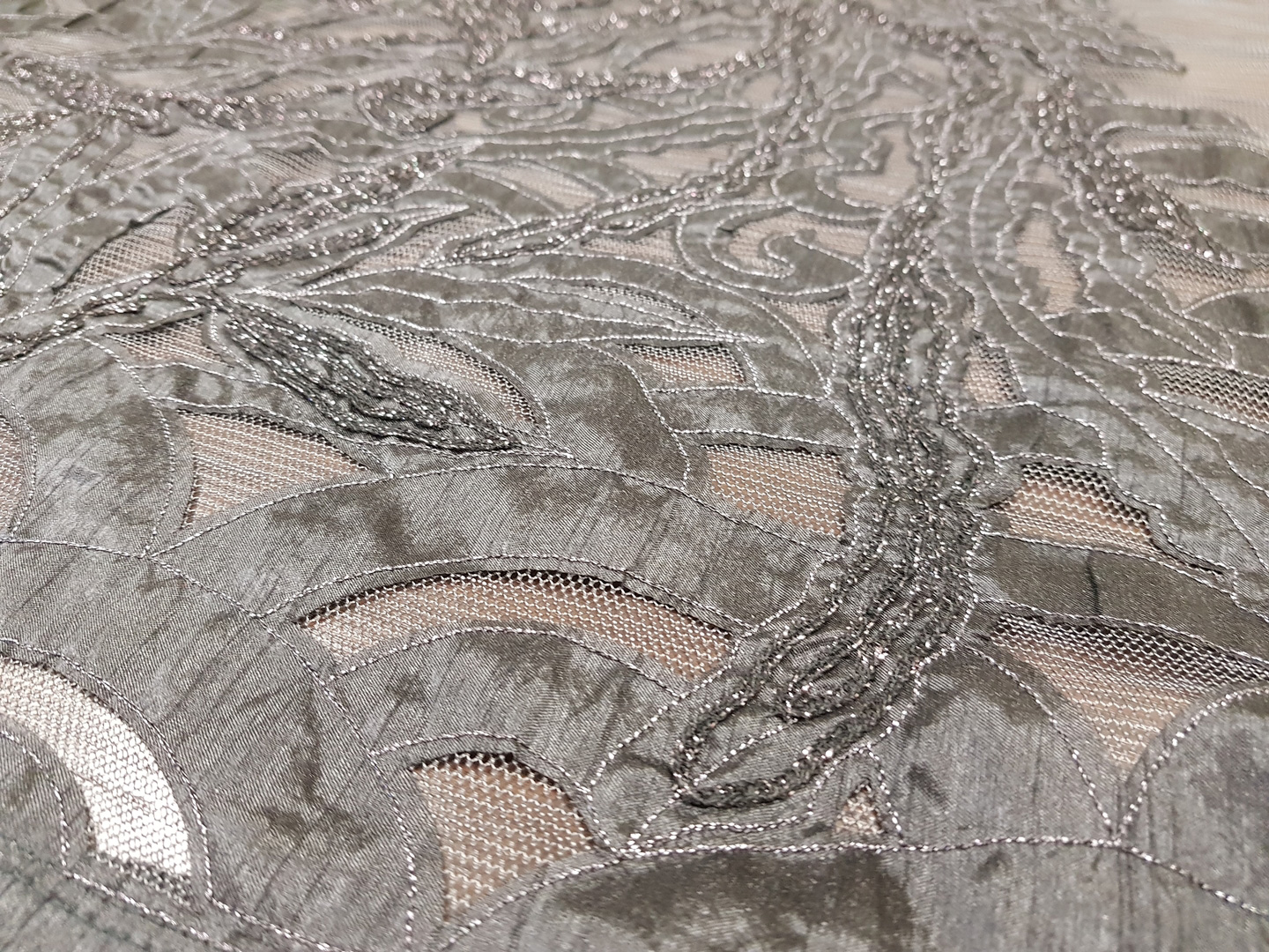 - Ricamo tagliato al laser fiori su raso effetto pizzo