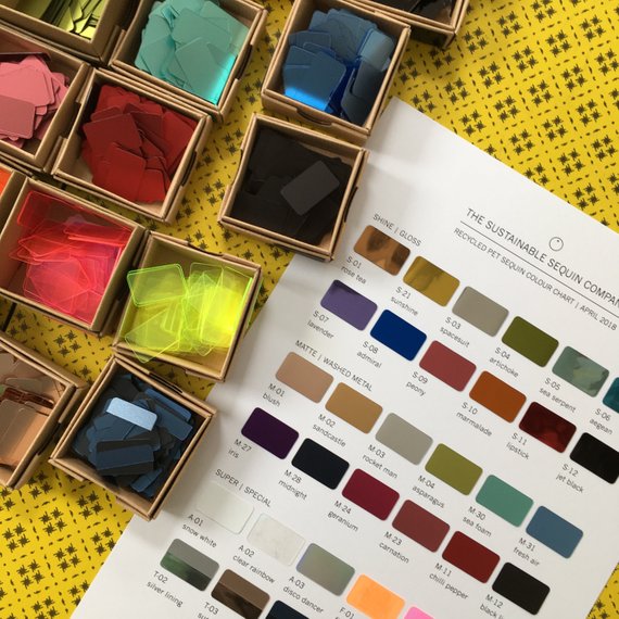 - Mix di paillettes realizzate con materiale riciclato PET per ricami eco sostenibili.